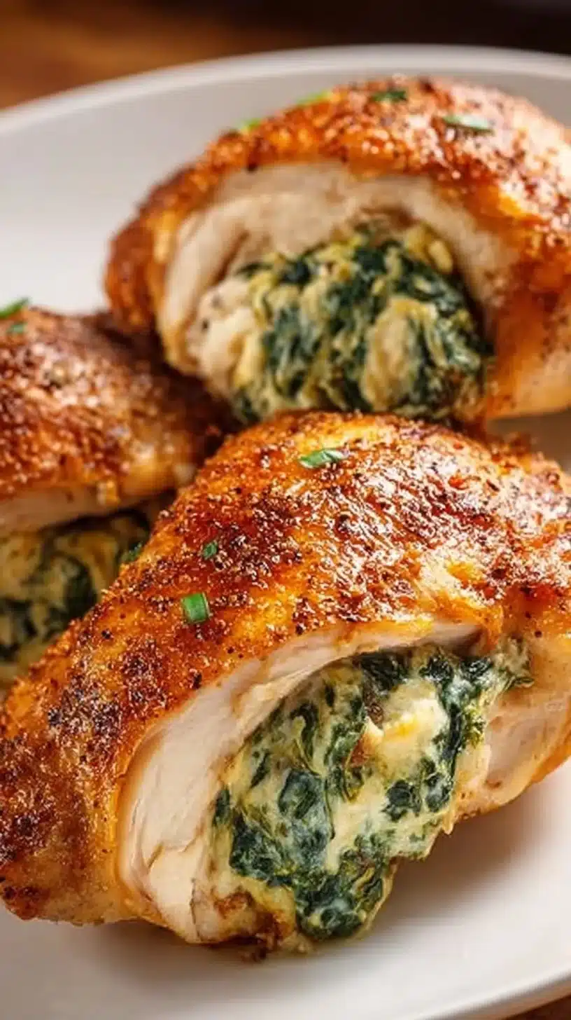 Let’s talk flavor, shall we? This chicken breast doesn’t just flaunt a pretty face; it’s packed with creamy, cheesy goodness that’ll make your taste buds do the cha-cha. Picture this: tender chicken enveloping a savory filling of cream cheese, mozzarella, and spinach. It’s like a hug in food form!