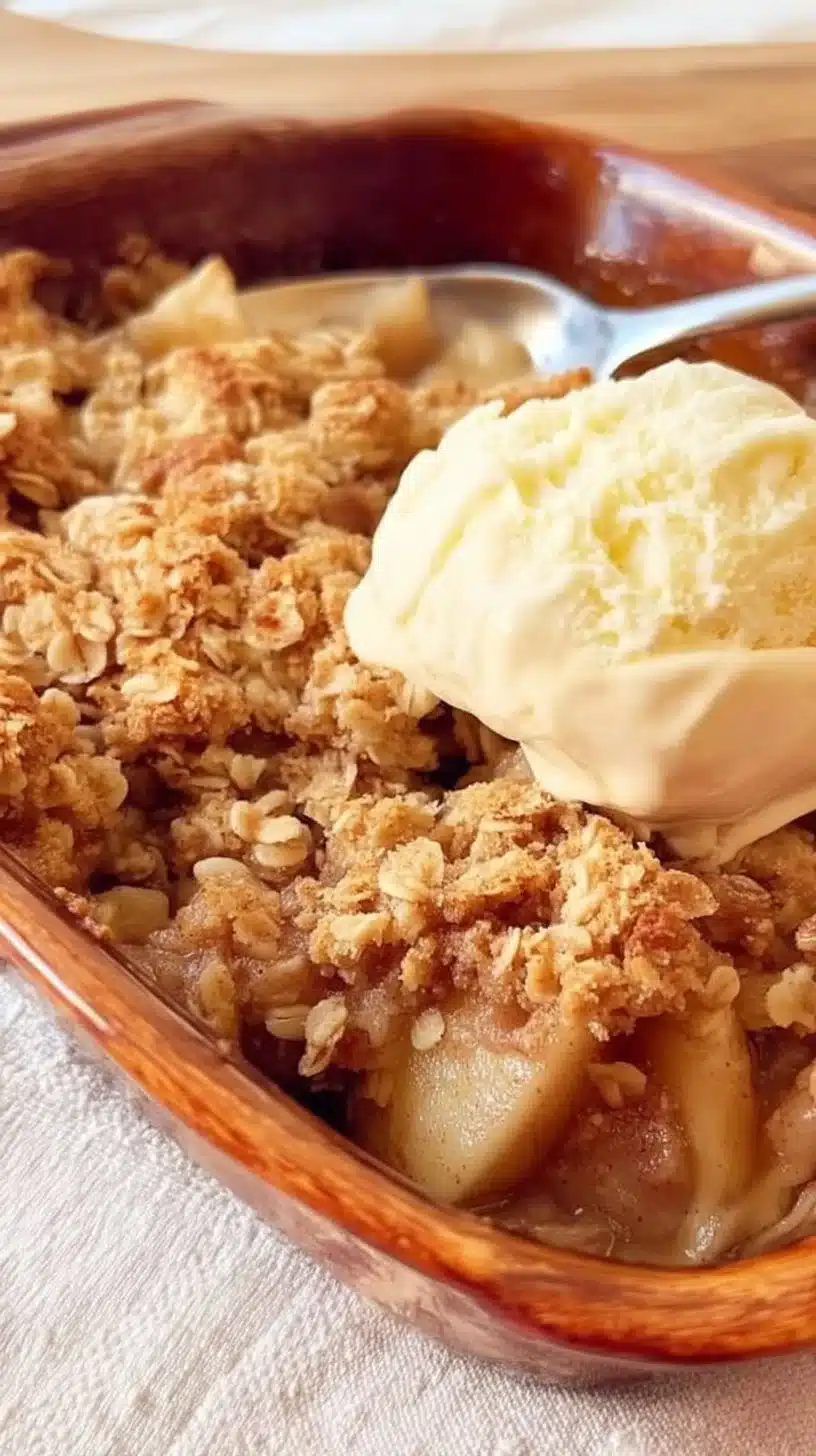 - Bake: Pour the apple mixture into an 8×8-inch baking dish, spreading it into an even layer. Sprinkle the crumble topping evenly over the apples. Bake for about 35 minutes, or until the topping is golden brown and set. Allow it to cool for at least 15 minutes before serving.