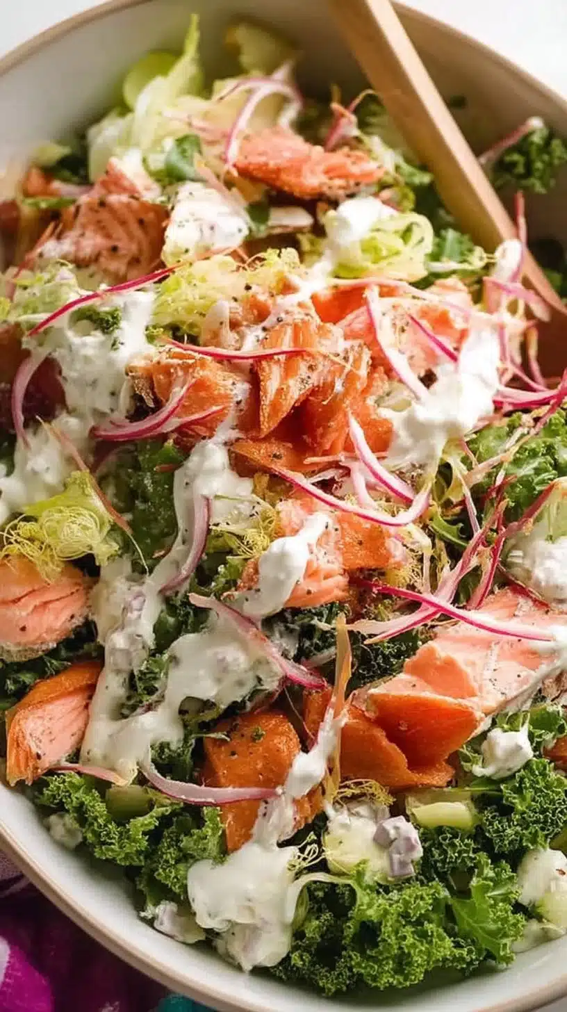 Celebration Salmon Salad with Yoghurt Ranch Dressing is perfect for any occasion. It’s a vibrant dish, combining the rich flavors of hot smoked salmon with fresh, crisp vegetables and creamy dressing. This salad is not only delicious but also healthy, packed with nutrients from the greens and beneficial fats from the salmon. Whether you’re hosting a gathering or just want a delightful meal, this salad will impress everyone!