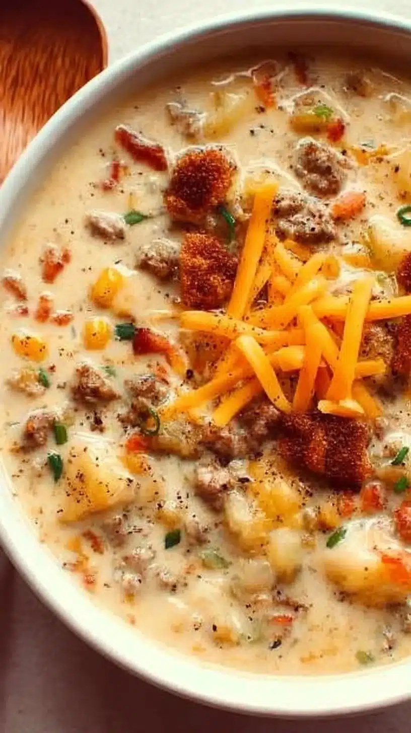 Cheeseburger Soup is a warm and comforting dish that combines all the flavors of a classic cheeseburger in a creamy soup. It’s hearty, filling, and easy to make, making it a perfect choice for family dinners or cold winter nights. Plus, who doesn’t love the idea of enjoying a cheeseburger in a bowl?