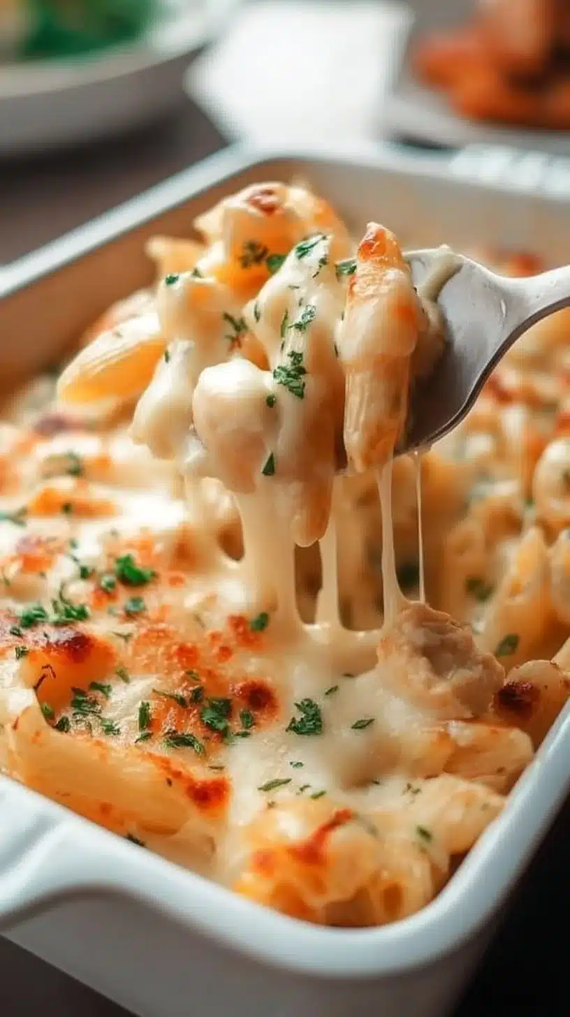 Chicken Alfredo Pasta Bake is a comforting and satisfying dish that brings together creamy Alfredo sauce, tender chicken, and hearty pasta all baked to perfection. It is a great option for dinner or a potluck, easy to prepare, and it is loved by both kids and adults. Plus, you can use leftover chicken, making it a time-saver for busy weeknights.