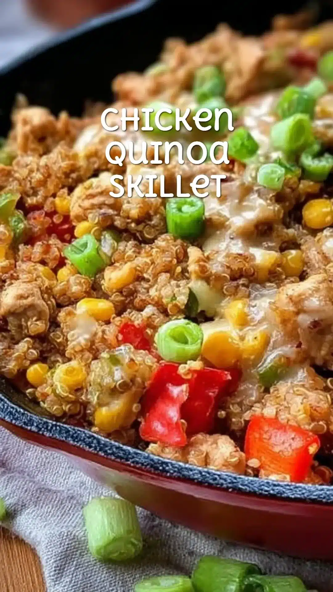 Chicken Quinoa Skillet can be served as a complete meal on its own. You can also pair it with a fresh salad or some crusty bread for a balanced dinner. Garnish with extra cheese or sliced green onions if desired.