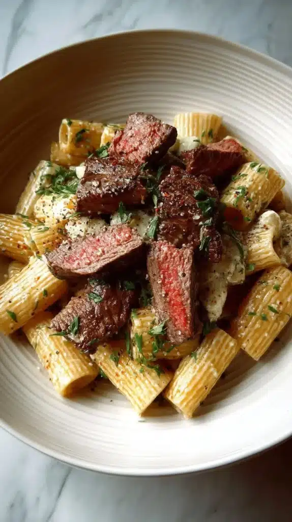 Also, texture is a big deal: chewy, slightly charred steak slices plus toothsome rigatoni or penne and silky butter sauce = a glorious mouth party. Want a micro food-nerd fact? The fat in butter helps disperse flavor compounds from garlic and paprika, making every bite wildly more aromatic. Science, baby.