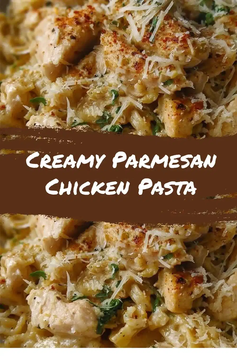 Creamy Parmesan Chicken Pasta dish garnished with herbs