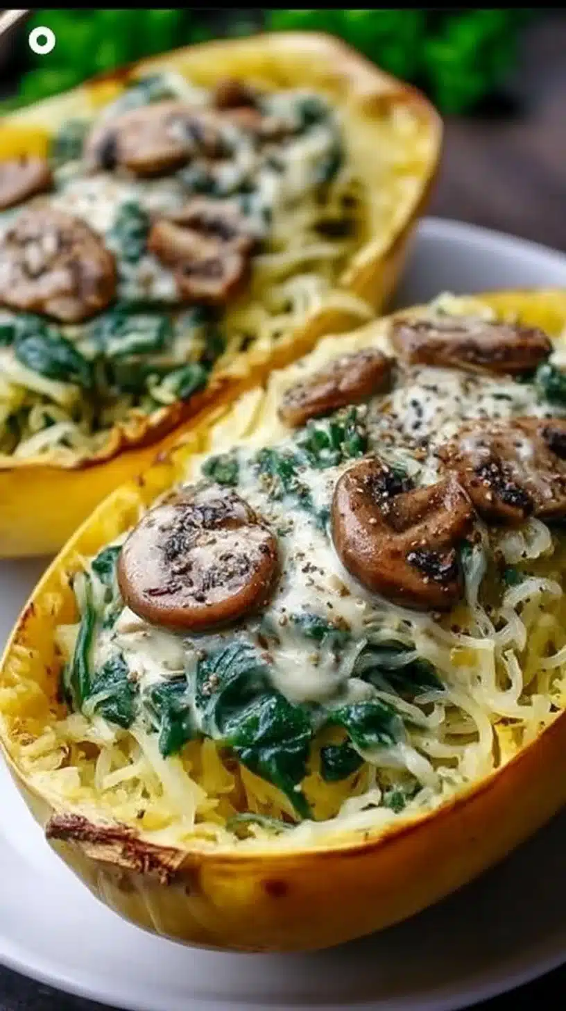 Creamy Spinach and Mushroom Stuffed Spaghetti Squash