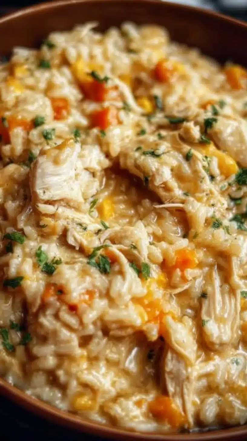 Delicious crockpot chicken and rice served in a bowl, perfect for family meals