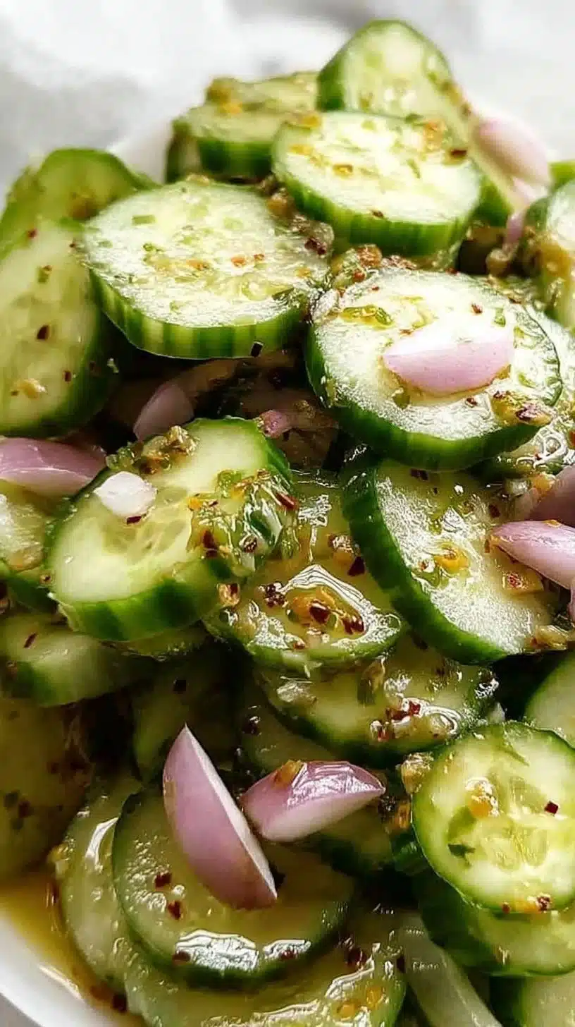 This Cucumber Salad can be served chilled or at room temperature. It makes an excellent side dish for grilled meats, sandwiches, or as a fresh addition to any meal. You can also enjoy it on its own for a light lunch. For an extra touch, you can add some fresh herbs as a garnish before serving.