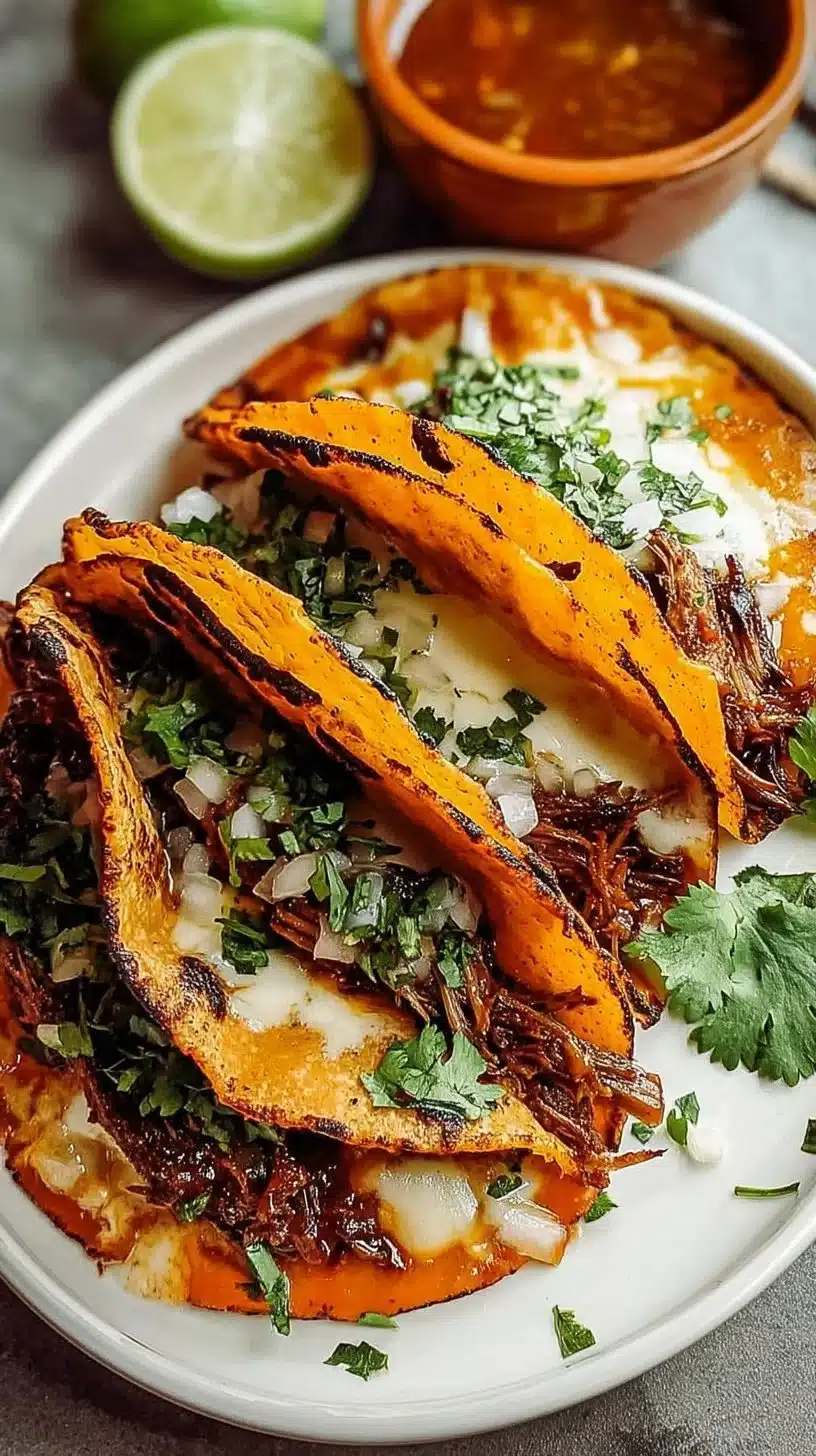 Hey there, taco lovers! If you’ve been scrolling for the perfect dish to impress at dinner (or for a Netflix binge session, no judgment here), say hello to Delicious Birria Tacos (Quesabirria)! You’re about to dive into a culinary adventure that’ll have your taste buds dancing. Seriously, these tacos are the perfect blend of savory, spicy, and cheesy goodness—each bite is a little piece of heaven. And let’s be real: You’re about to become the taco hero in your kitchen. So grab your apron, and let’s do this!