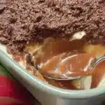 Caramel Time: Now, drizzle that gooey caramel sauce all over our cream cheese layer. Don’t be shy—cover it well!