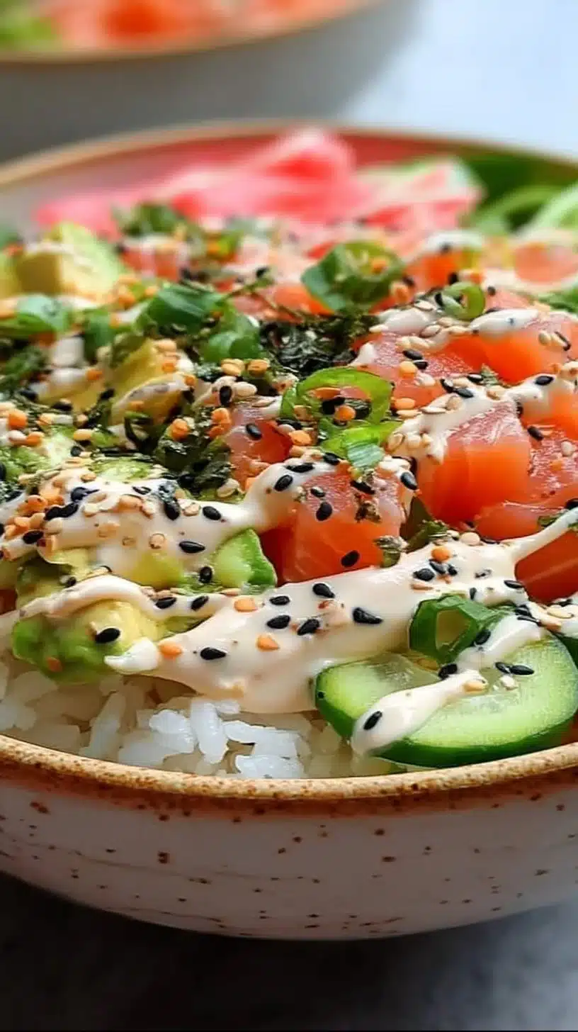 Serve the sushi bowls fresh, allowing everyone to customize their toppings. Have extra spicy mayo and soy sauce available for those who love more flavor. It’s a great idea to enjoy them immediately after assembling for the best taste and texture.