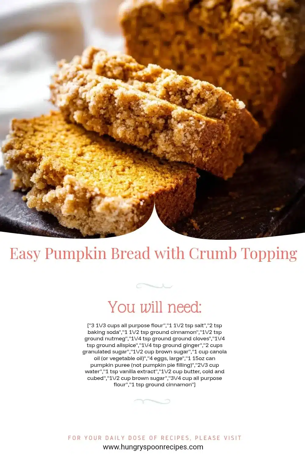 Enjoy the wonderful blend of spices and the moist texture of this Easy Pumpkin Bread with Crumb Topping!