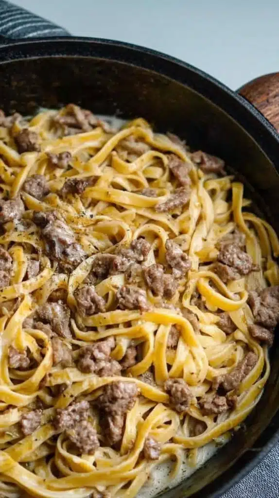Feel adventurous? Swap the ground beef for ground turkey or Italian sausage for a flavor punch. No heavy cream? Use half-and-half plus a tablespoon of butter for richness. Want green? Stir in spinach toward the end — it wilts instantly and makes you feel virtuous.