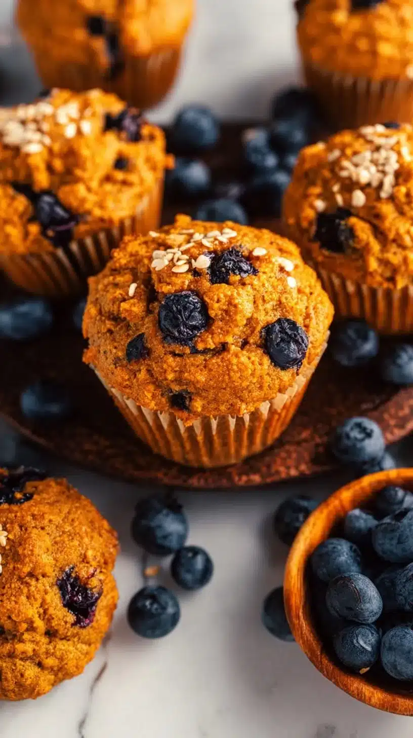 Healthy Whole-Grain Pumpkin Blueberry Muffins
