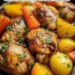 Chicken Time: Sprinkle your chicken pieces with seasoning (don’t be shy with that salt and pepper) and lay them on top of the onions and garlic. No need to sear them; we’re going straight to flavor town!