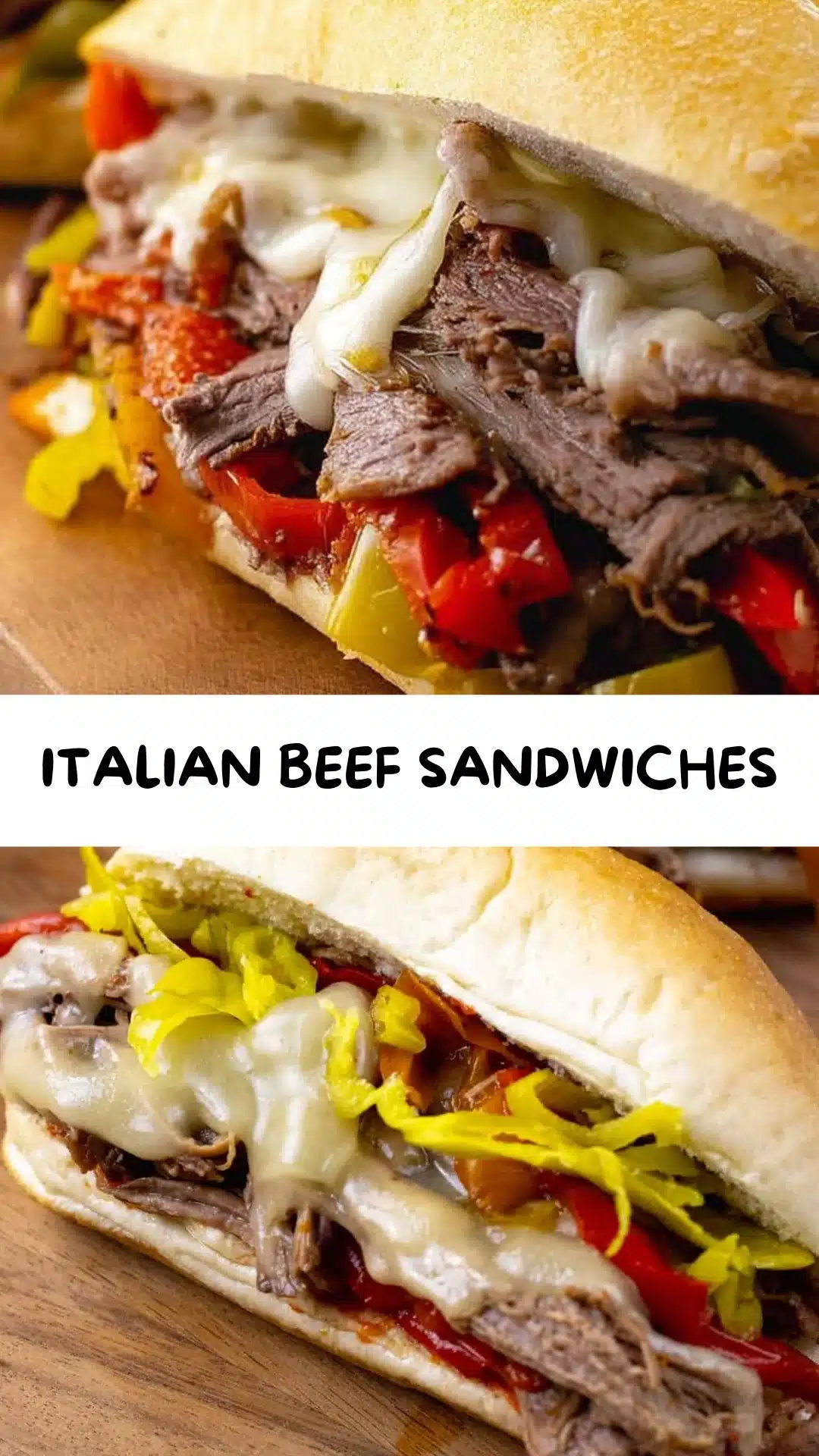 - Assemble your sandwiches by laying cheese on the bottom of the roll, topping it with meat and peppers, then adding pepperoncini on top. (Cheese first = melty hug for the meat.)