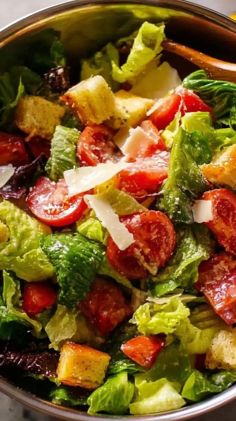 Mega Italian Salad is a delicious and colorful dish that brings together fresh ingredients in a way that is vibrant and tasty. It’s perfect for any occasion, whether you are hosting a dinner party or just want a healthy meal on a warm day. The combination of crunchy croutons, fresh vegetables, and a zesty dressing makes it not only satisfying but also very enjoyable. Plus, it’s a great way to use up leftover bread!