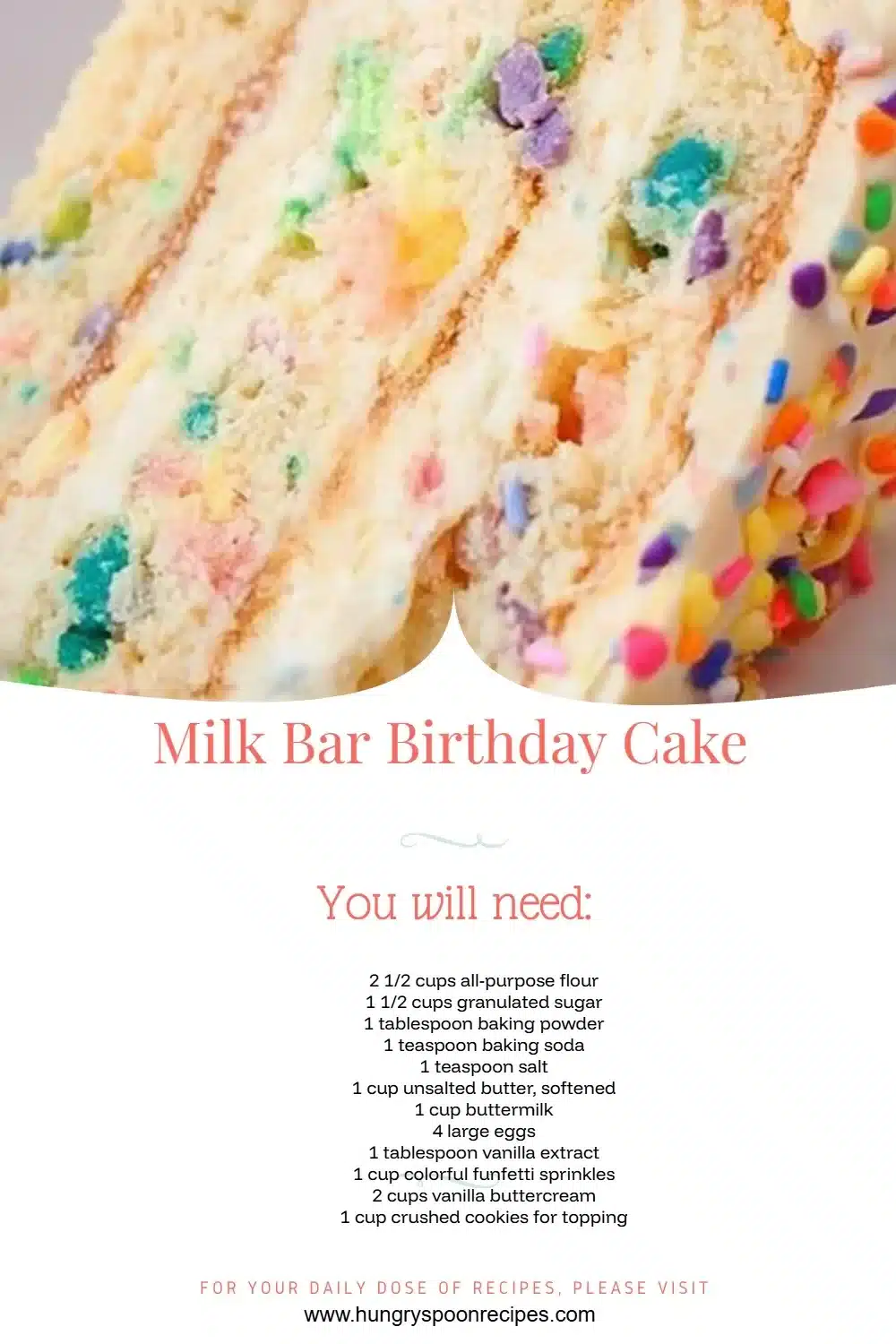 Milk Bar Birthday Cake is a fun and colorful treat that captures the joy of celebrating special occasions. This cake is not only delicious but also visually appealing, making it perfect for birthday parties. The combination of soft vanilla cake layers and sweet buttercream frosting, along with playful funfetti sprinkles, makes this cake a hit for both kids and adults alike. Baking this cake is a great way to create lasting memories with loved ones, and it’s simply a celebration in every slice!