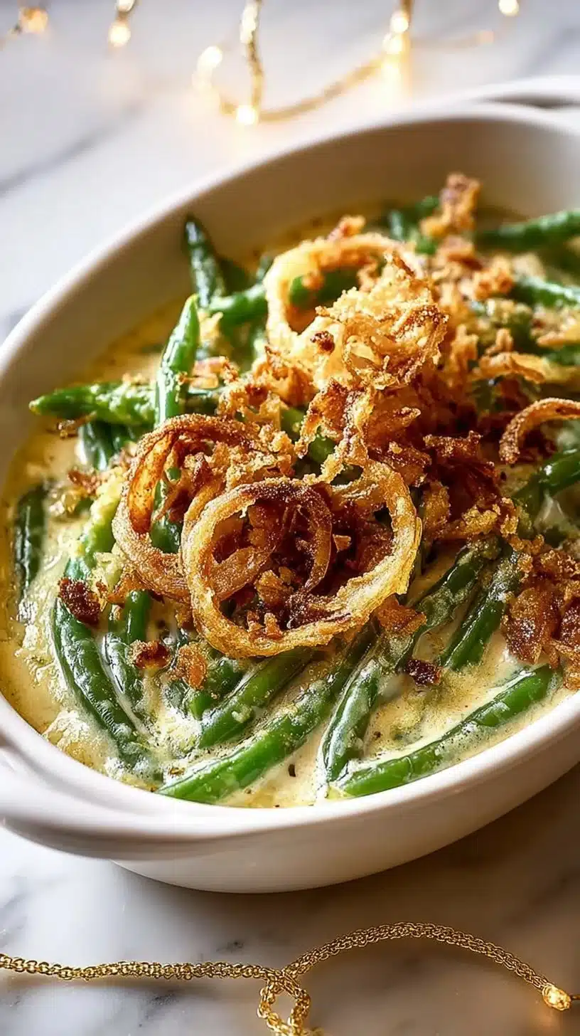 Okay, let’s spill the tea: this No-Mushroom Green Bean Casserole is a showstopper for a reason. It brings together crisp, tender green beans, a creamy garlic sauce, and a dazzling crown of crispy fried onions that practically scream, "Eat me!" It’s the comfort food we all need in our lives—rich, creamy, and totally mushroom-free, just the way we like it!