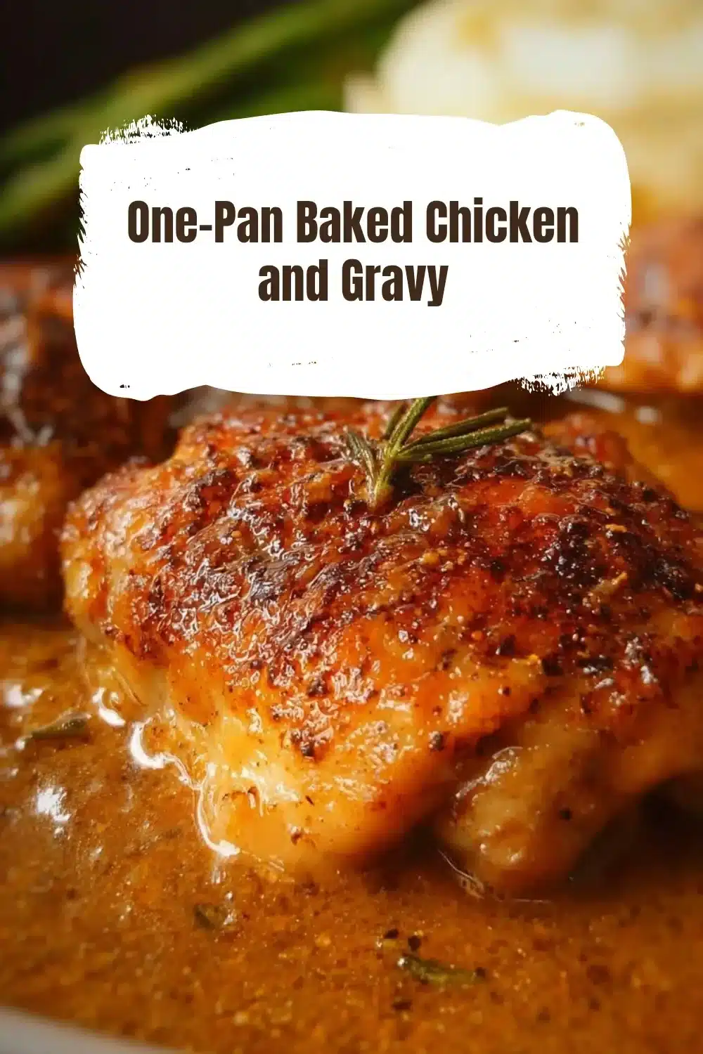 Serve One-pan Baked Chicken and Gravy directly from the baking tray for a family-style meal. Pair it with creamy mashed potatoes and some fresh steamed greens. This combination not only looks appetizing but also ensures that every bite is packed with flavor.
