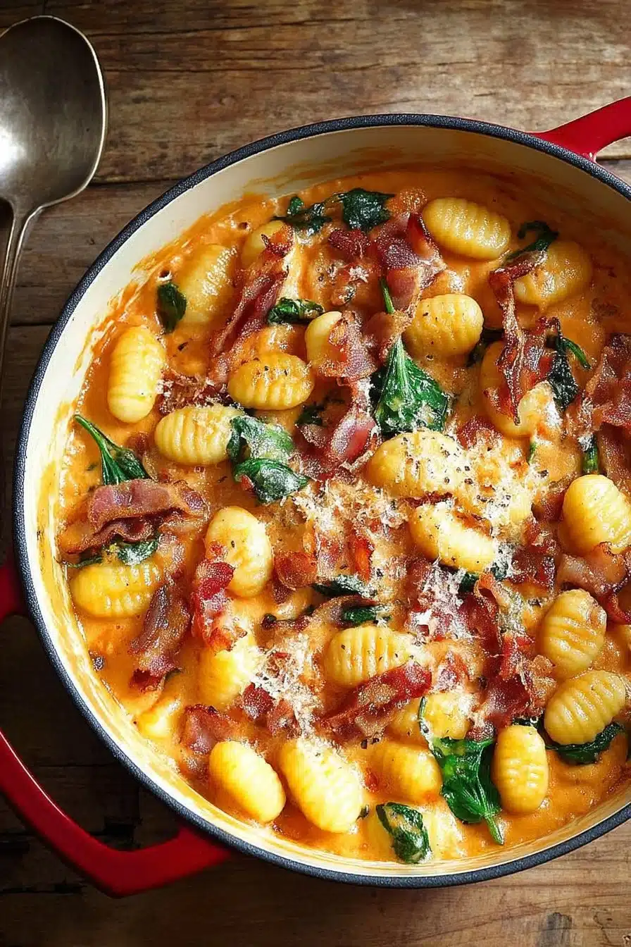 A quick and delicious one-pot meal combining crispy bacon, creamy gnocchi, and vibrant Tuscan flavors.