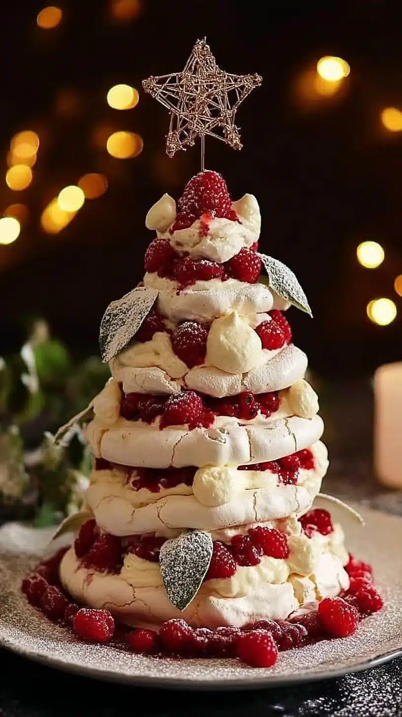 Serve the Pavlova Christmas Tree as a festive centerpiece at your holiday table. It’s perfect for sharing and is sure to delight your guests. Pair with extra whipped cream or a side of raspberry coulis for added flavor.