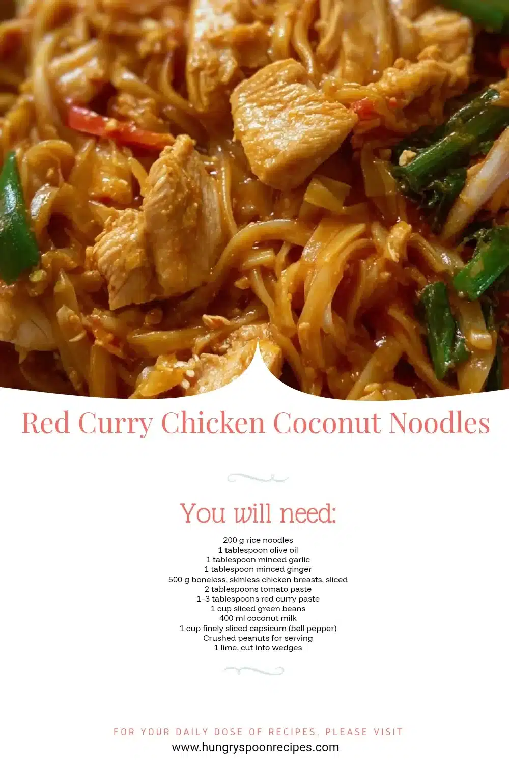 Red Curry Chicken Coconut Noodles is a delightful dish that brings a taste of Thailand right to your kitchen. It’s easy to prepare and packed with flavors from fresh ingredients like ginger, garlic, and coconut milk. This recipe is perfect for those busy weeknights or a cozy weekend dinner. The combination of spicy red curry and creamy coconut milk creates a rich sauce that perfectly coats the noodles and chicken. Plus, it’s customizable, so you can adjust the spice level to suit your taste!
