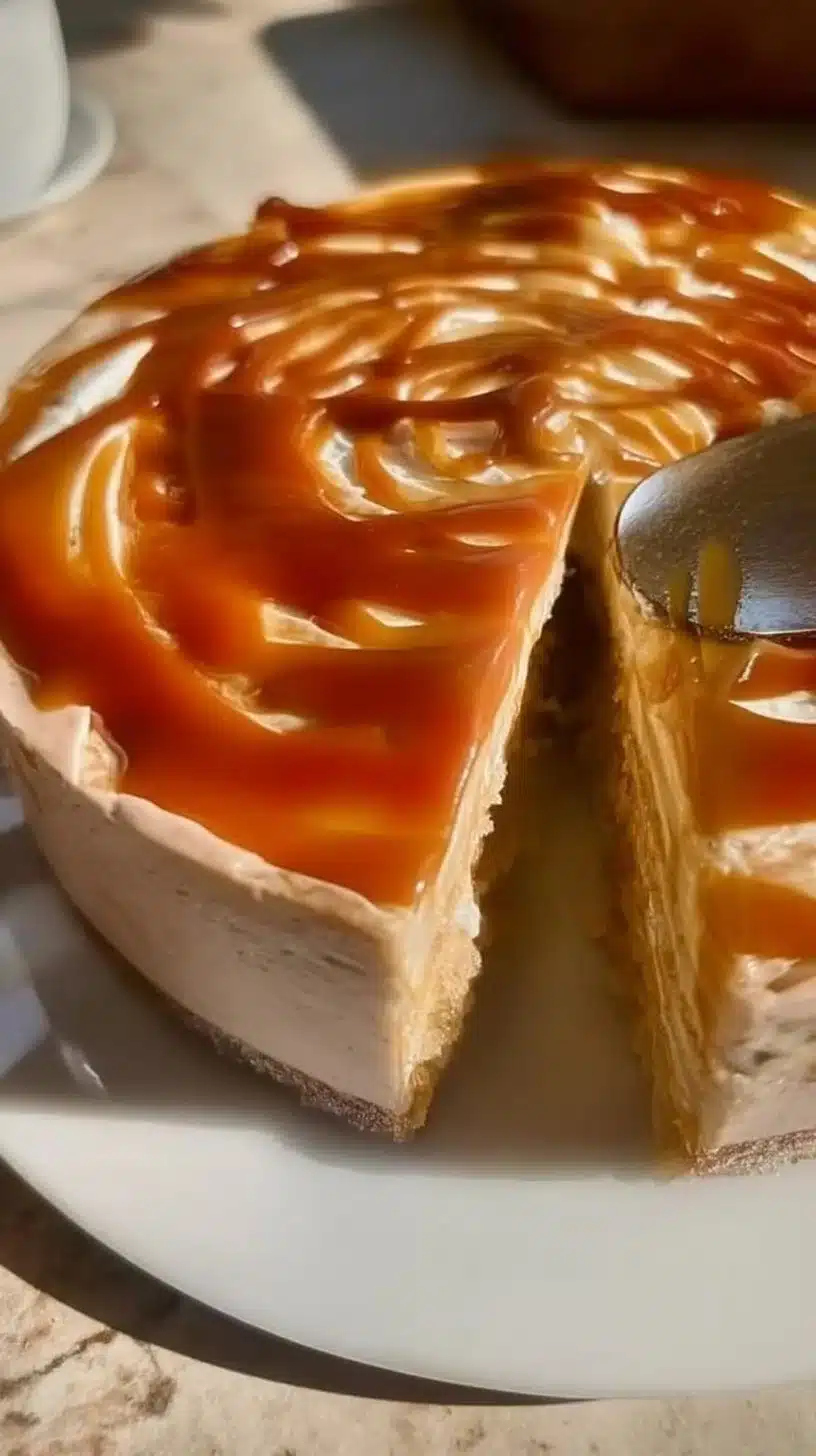 Serve this cake at room temperature for the best flavor. Slice it into generous pieces and enjoy it with a cup of coffee or tea. This cake can be adorned with extra caramel drizzle or a sprinkle of sea salt for an elegant presentation.