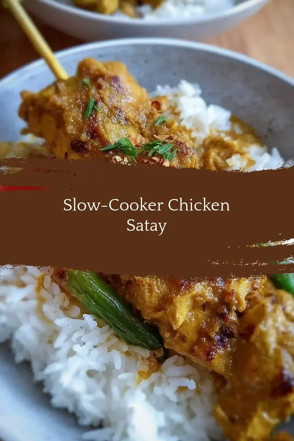 Serve Slow-Cooker Chicken Satay hot over a bed of fluffy steamed jasmine rice. Garnish with crushed peanuts for a crunchy texture and extra flavor. It also pairs well with fresh cucumber slices or a simple salad on the side for a refreshing touch.