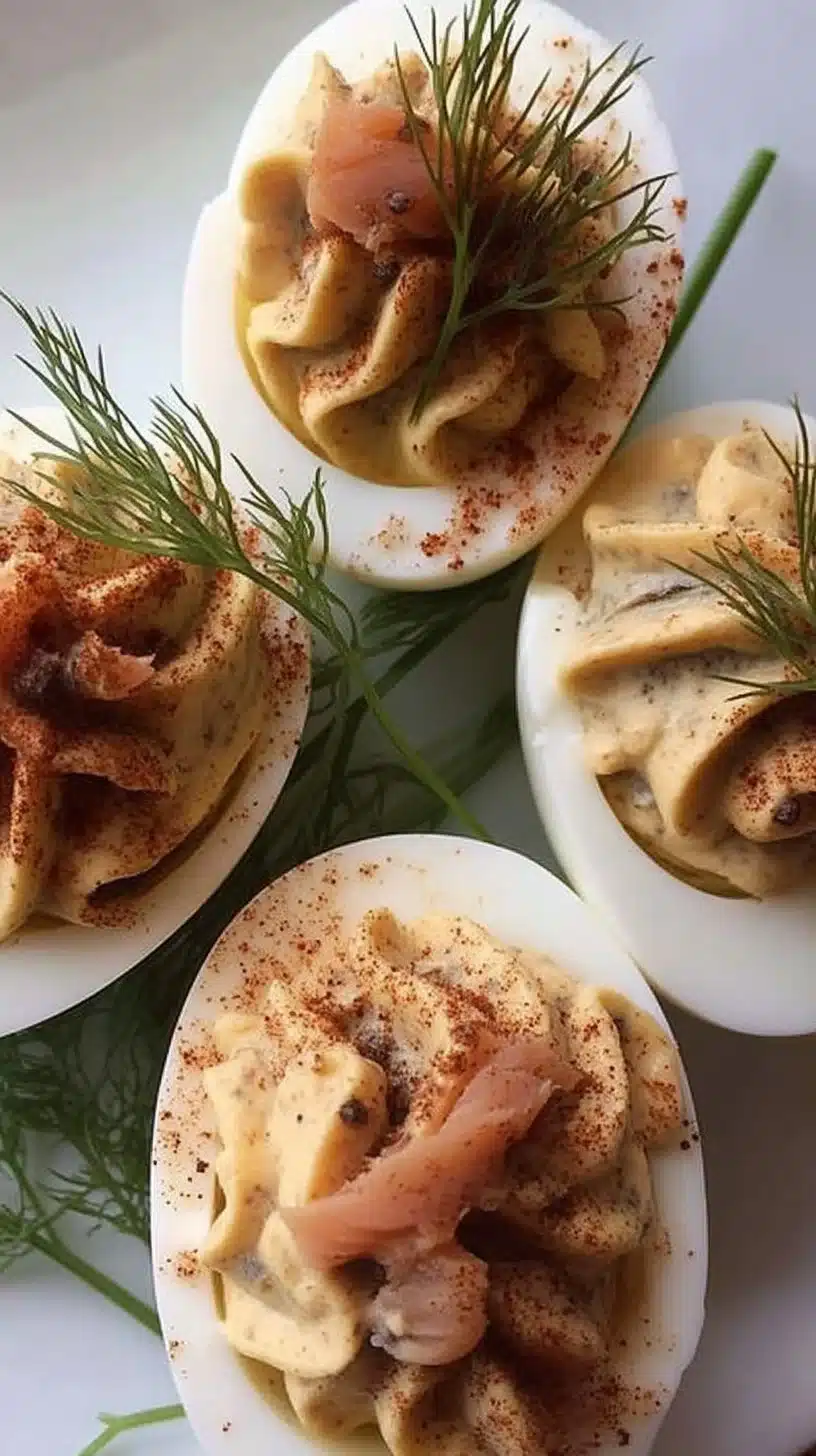 Delicious and creamy deviled eggs with a twist of smoked salmon and a hint of lemon, perfect for any occasion.
