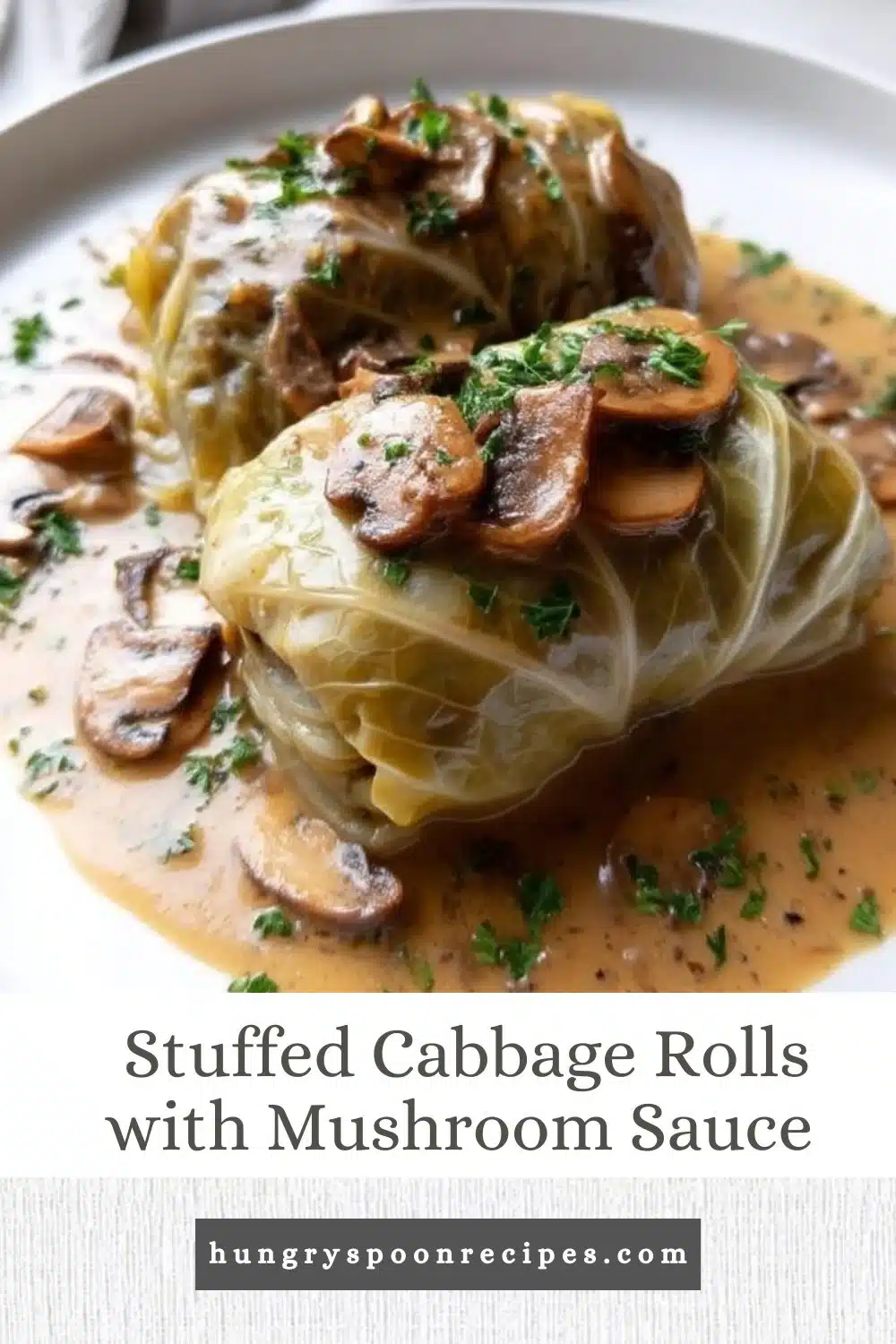Delicious stuffed cabbage rolls served with rich mushroom sauce