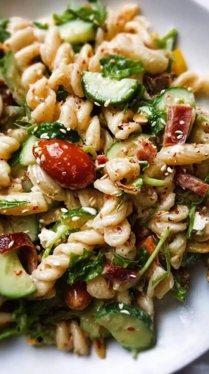 A light and refreshing pasta salad, perfect for summer picnics and BBQs, packed with vibrant colors and flavors.