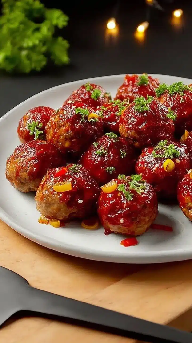And there you have it, folks! Your very own Sweet Chili Meatballs that are easy enough for a weeknight but fancy enough for a gathering. This dish is guaranteed to earn you serious cooking cred among your friends and family—or at least a round of “who made these?” Thank you for spending this delicious time with me, and I hope you enjoy every sticky, sweet bite! Get cooking and remember: your kitchen is a playground, so keep it fun! 🍽️
