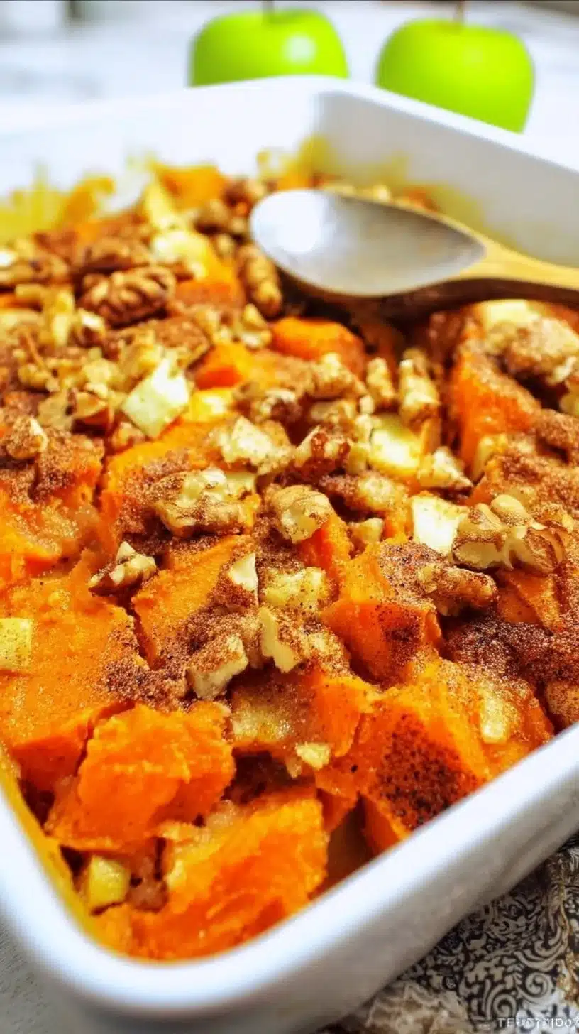 This Sweet Potato and Apple Casserole is the ultimate comfort dish, combining creamy sweet potatoes and tart apples with a crispy pecan topping that will warm your heart and impress your guests.