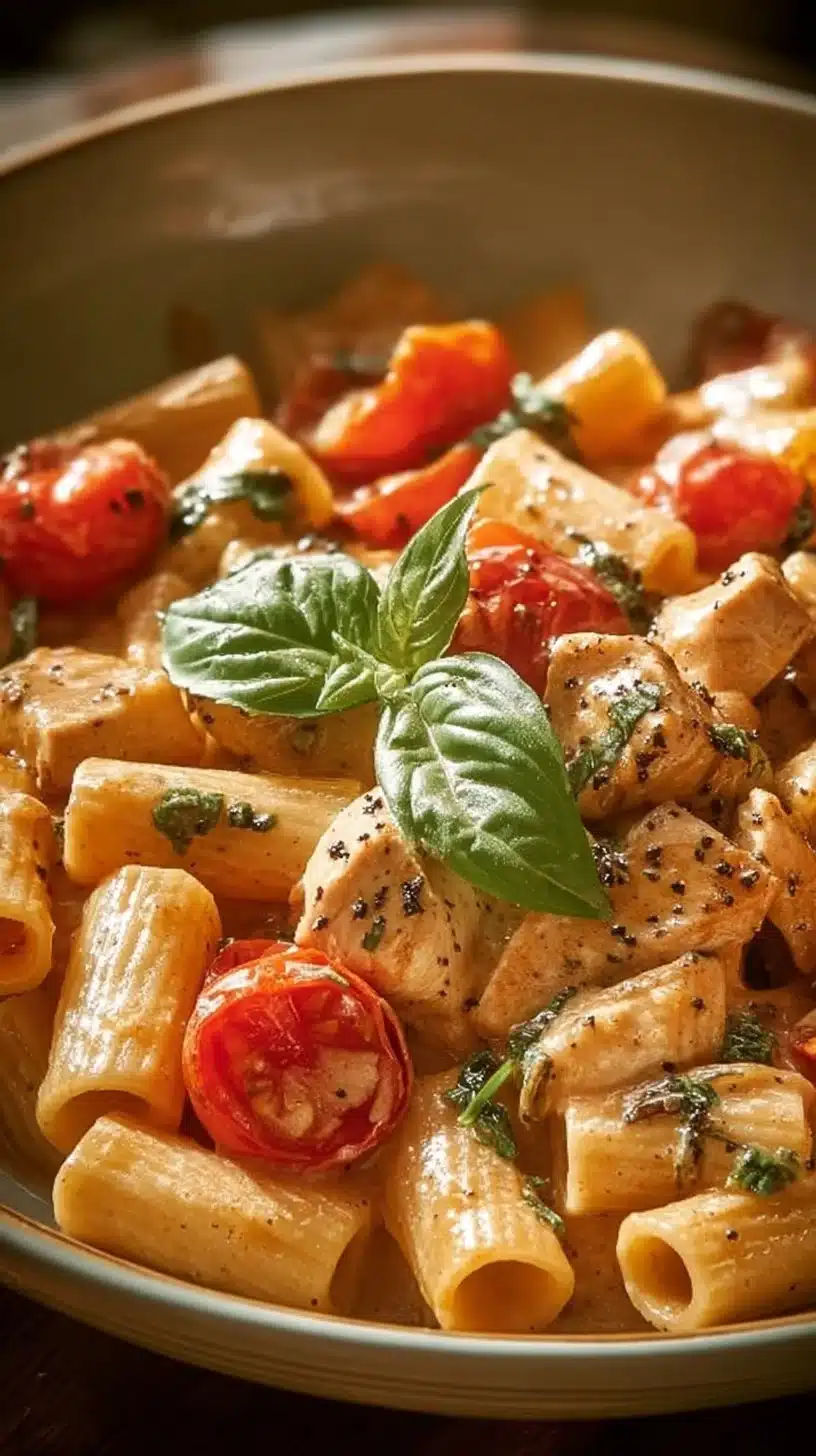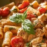 Let me tell you, Tomato Basil Chicken Rigatoni is nothing short of a superstar in the pasta universe. Why, you ask? First off, it features juicy chicken chunks cozying up with fresh tomatoes and fragrant basil—it’s like a party for your taste buds! Plus, who doesn’t love a creamy sauce that hugs every single rigatoni tube?