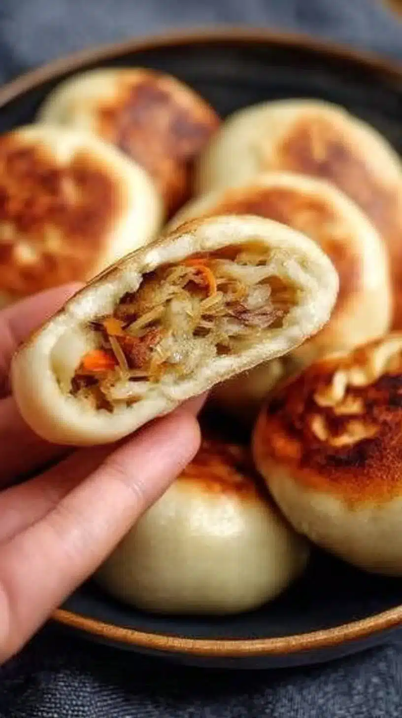 Serve the Vegan Pan-Fried Buns hot with a side of soy sauce or a dipping sauce of your choice. Garnish with additional chopped scallions or sesame seeds for extra flavor. They make a great appetizer or snack.
